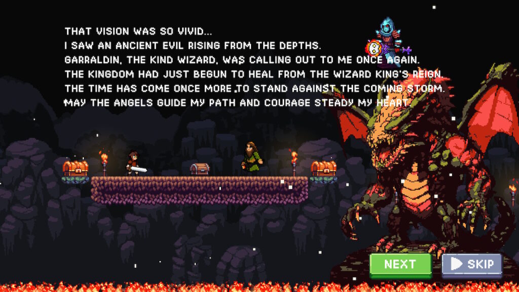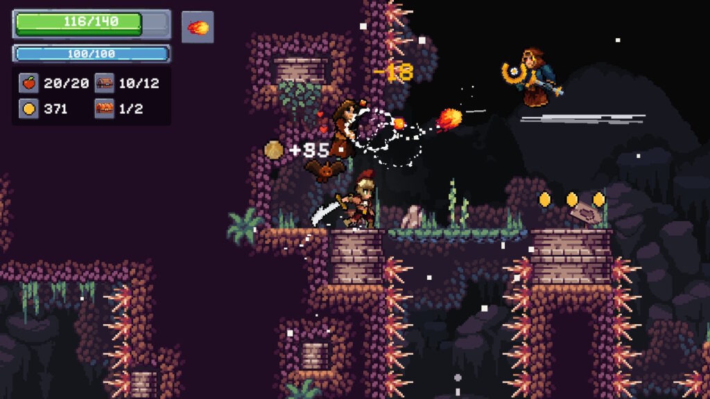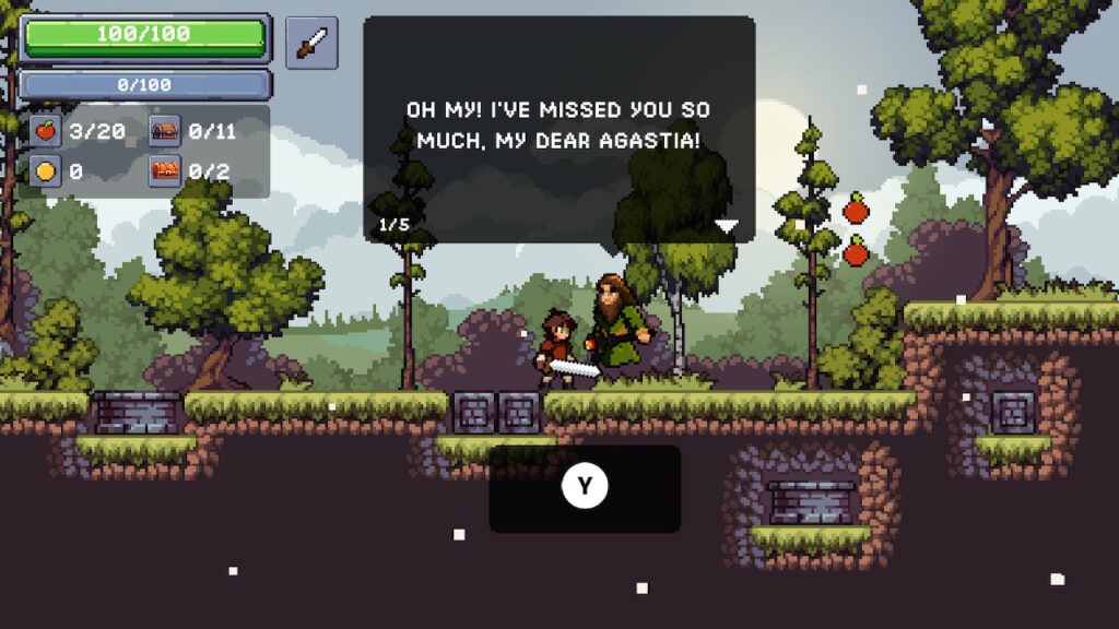 本作はステージ攻略式のカジュアル2Dプラットフォーマー。プレイヤーは魔術師ガラルディンに導かれたリンゴの騎士となり、再興の真っ只中にある王国を古代の邪悪の手から守るために立ち上がる。