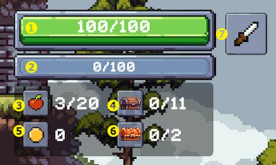 | ➌:リンゴの残量 | ❼:装備中の武器 |