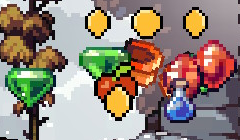 作中の通貨となるコインは、フィールド上の随所に配置された金貨、もしくは敵ドロップや宝箱、ツボなどのオブジェクト破壊時に出現する金目のアイテムを取る事で獲得できる。最も最小単位となる金貨が1枚につきコインを1つ獲得。各色宝石については青が2、緑が3、赤い宝石がコイン5枚分に該当する。