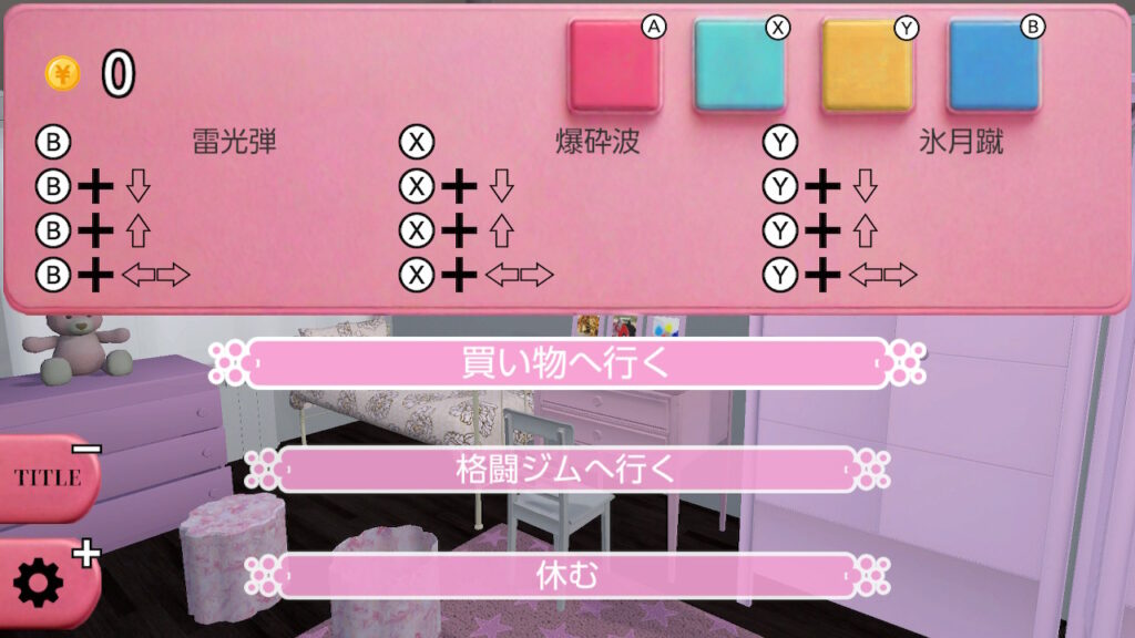 「格闘ジムへ行く」では、所持金と引き換えに文自身の強化が可能。購入1回毎にLvアップと共に必殺技を1つ習得することができる。