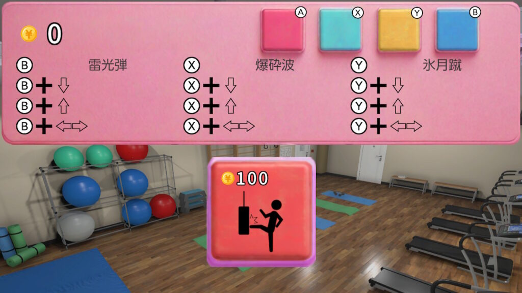 各必殺技は格闘ジムでの購入を通じて1つずつ、段階的に習得することができる。