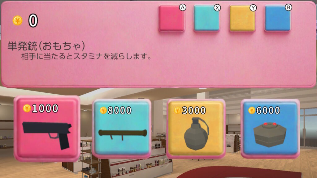 バズーカ(おもちゃ)と手榴弾(おもちゃ)は買い切り商品につき、一度購入後は売り切れ状態となる。