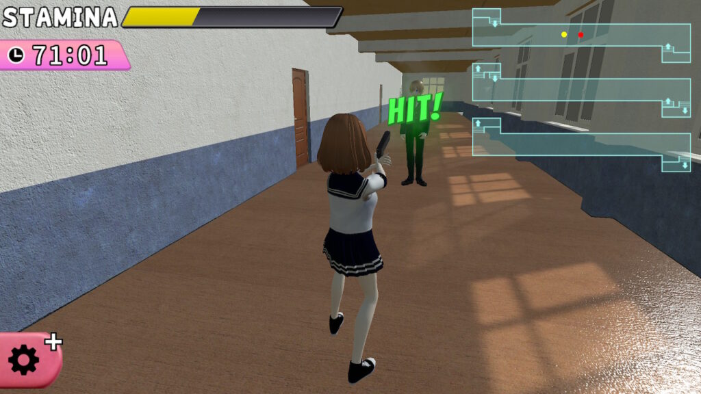 「追跡パート」ではサードパーソンシューティングのようなシステムで銃器や手榴弾、バズーカを駆使して足止めして翔馬を捕まえるというルールによる鬼ごっこが展開。一定の戦略性を伴い、後半に進むに連れて難易度も上昇するため、これはこれで白熱するパートではある。