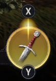 武器の内クロスボウや投げ槍などの弾数制限のあるものは遠隔用武器となっており、これらは照準マーカー(上画像)が表示中の場合に限りXボタンで発動が可能。マーカーが出ていない時は撃つことができない。