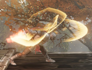 装備している予備武器の種類によって構えや太刀筋が変化するが基本的な効果は同じで、衝撃波の射程はそこまで長くないため、固まった敵を相手に一度にダメージを与えられるのは最大でも3体同時が精一杯といったところ。