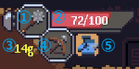 | ②:HPゲージ | ⑤:装備中の魔法アイテム |