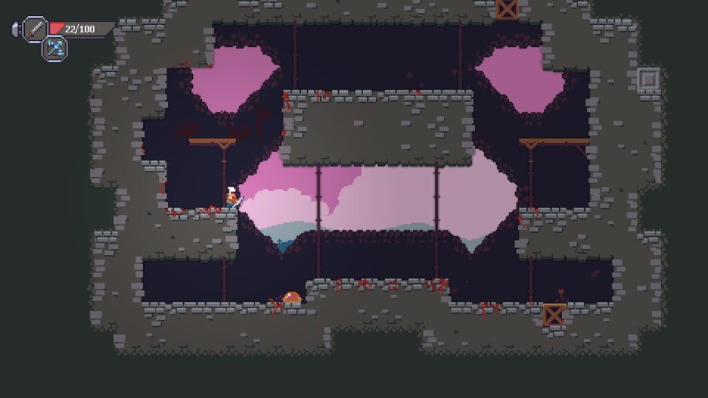 本作はランダマイザースタイルのダンジョン攻略2Dプラットフォーマー。プレイヤーは入場する度に姿を変える地下迷宮へと足を踏み入れ、最奥部を目指して冒険を繰り広げていく。