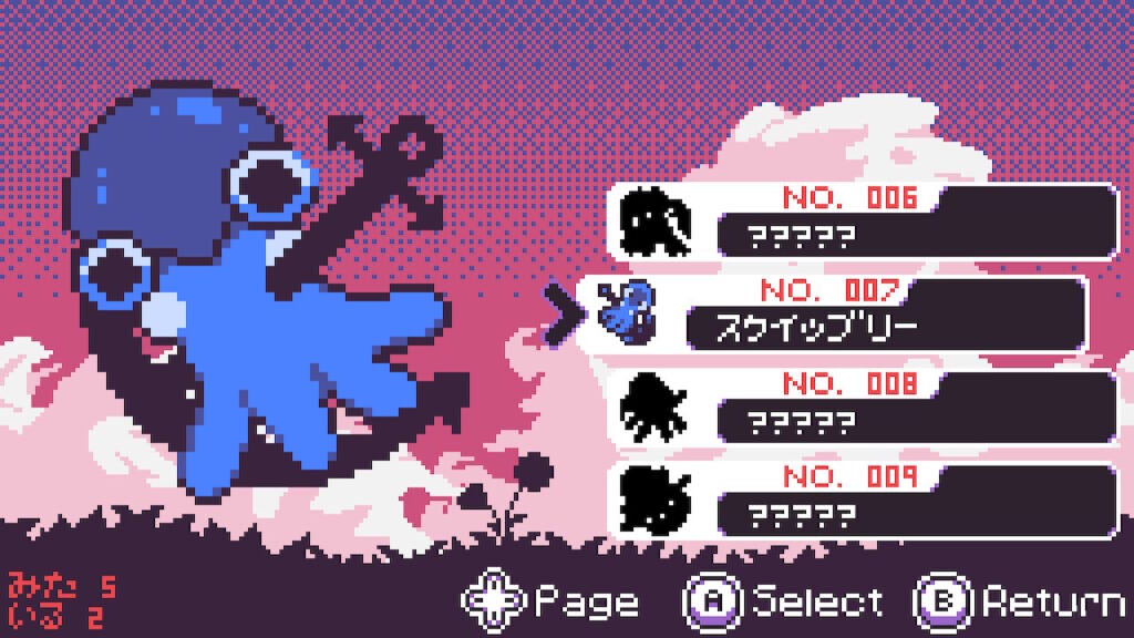 画面左下の「みた」と「いる」と表示されたカウンターは、遭遇経験のある対象、仲間に追加済みでパーティもしくはBOX内にいる対象の種族数を示しており、コンプリート状況の目安となる。