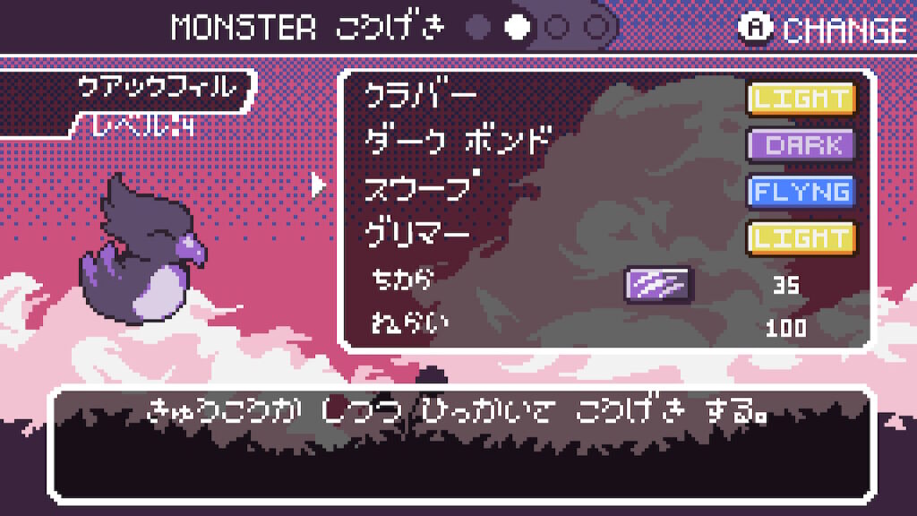 - 90~00年代携帯コンソール版「ポケットモンスター」シリーズを彷彿とさせるビジュアル及び解像度の高いゲームデザイン