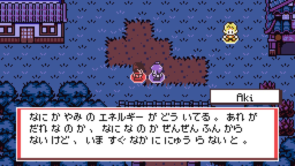 普段はひらがなと漢字の両方が混じった形で展開する作中テキストだが、一部NPCとの会話や回想シーンでは全文がひらがな表記且つ”音読みと漢読みがあべこべ”という有様で、プレイヤー側で別途解読が必要となる規模の読み辛さになっている。