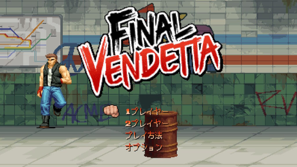 16bitテイストのドットビジュアルが印象的なベルトスクロール「Final Vendetta」。本編にあたる「アーケード」以外にも多彩なゲームモードが用意されており、1人プレイは元より2人でもローカル協力プレイや対戦モードなどの色々な遊び方で楽しむことができる。