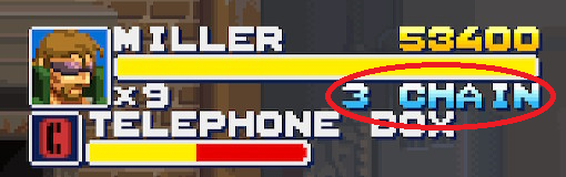 敵、もしくは破壊可能なオブジェクトを一定時間内に連続で攻撃する毎に「CHAIN」の数値が増加していく。