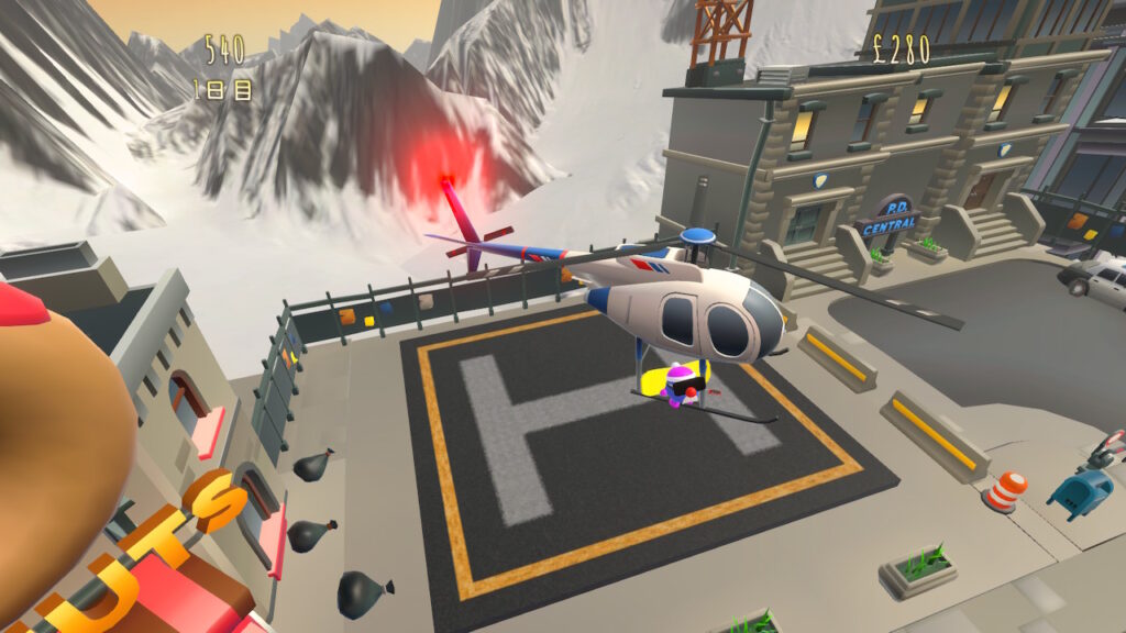 各日のAパートは市街地の一角からスタート。ここでは左右へと横断する道路を通行中の自動車に接触しないように慎重に渡り、ステージ最深部で待機中のヘリに辿り着くことでクリアとなる。