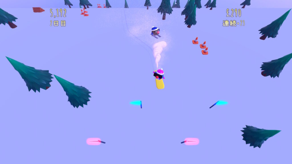 - スノーボードをモチーフにしたアーケードスタイルのシンプルなゲーム性