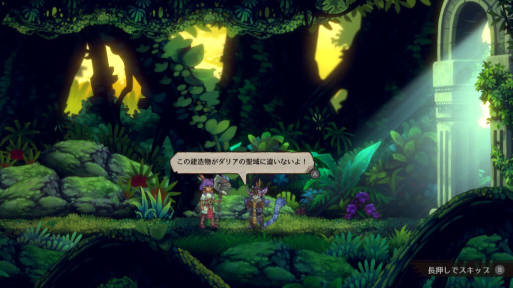 全編クリアまでの所要時間は9時間程度といったところで、探索型の2Dアクションゲームとしてはゴテゴテした感じはなく、シンプル且つオーソドックス。能力のアップグレードや冒険を通じて習得可能な特殊アクションといった成長要素も見られるが、いずれもコンパクトにまとめられていて決して複雑さは感じさせない印象だ。