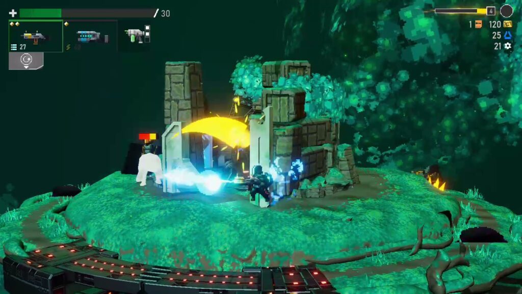 本作はローグライクゲームであり、プレイのたびに武器や敵の配置が異なるステージで遊ぶことができる。