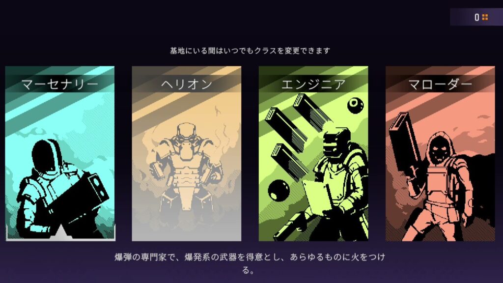 「銃弾」「爆弾」「エネルギー」「砲弾」の4系統の武器に対応したクラスを選択できる。