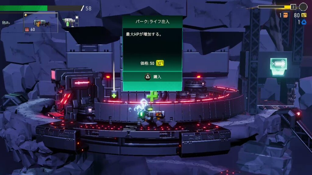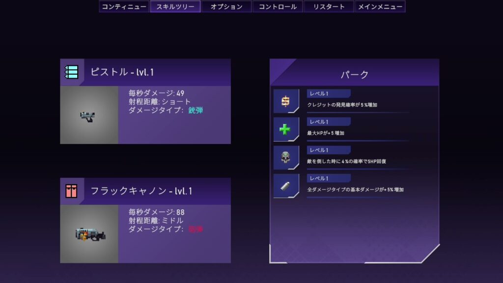 ・パークやアップグレードの取得や武器の交換はステージクリア時に取得するポイントを消費する。