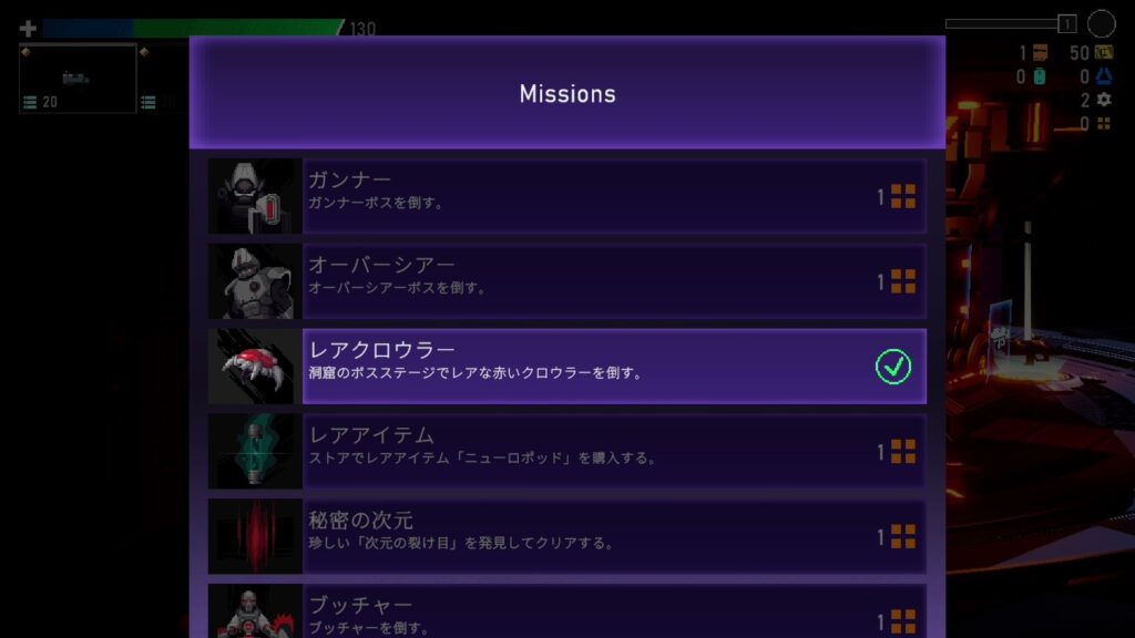 プレイ開始直後はランダムに選ばれた4種類のアップグレードが可能となっている。