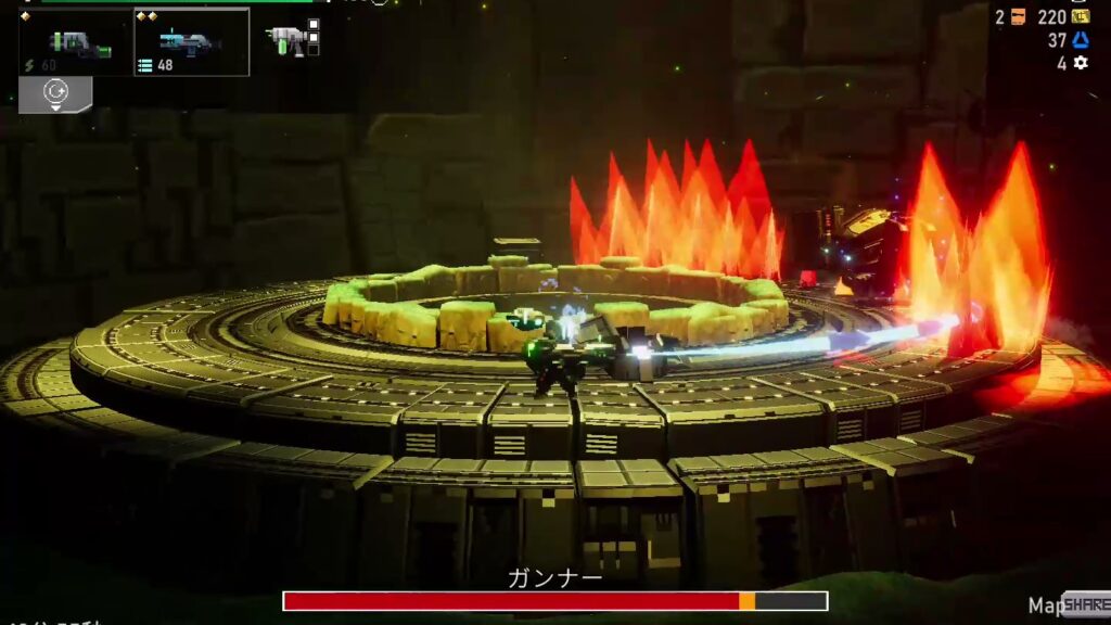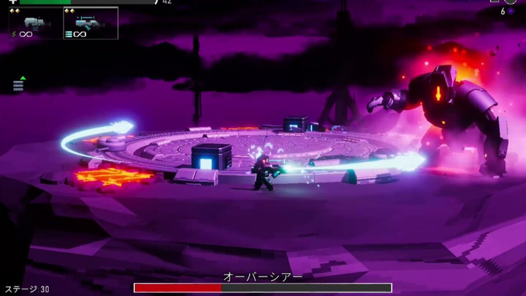 ゲームオーバーになるとプレイ中に取得した武器やクレジットは全て失ってからのリスタートとなる。