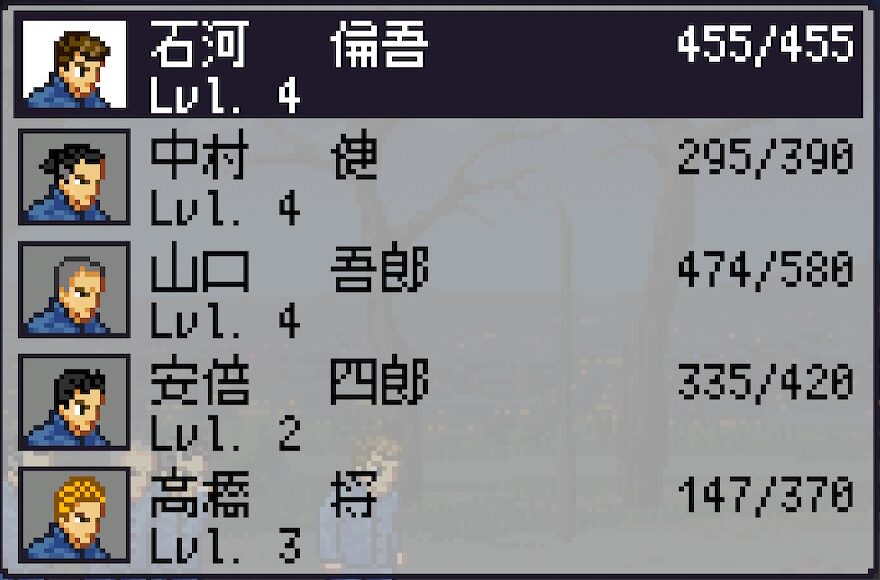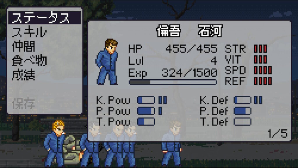 基本的にNPC扱いとなる仲間キャラクター達においてはLvlが上がることはまずなく、パラメーターが顕著に変動するのはほぼ倫吾だけ。
