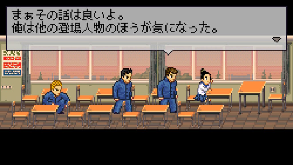 本の内容をプレイヤーが実際に読めるわけではないのが残念なところだが、習慣化することで”活字好きな不良”というキレモノな石河倫吾として振る舞うことも可能で、一部の本の読破後には専用の会話イベントも用意されていたりと実に細かい。
