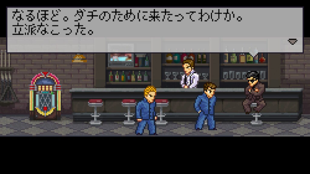 Aボタン | 決定、テキスト送り、(長押し中↑)腕組み立ち、(長押し中↓)ヤンキー座り、(R長押し中)パンチ(牽制) |