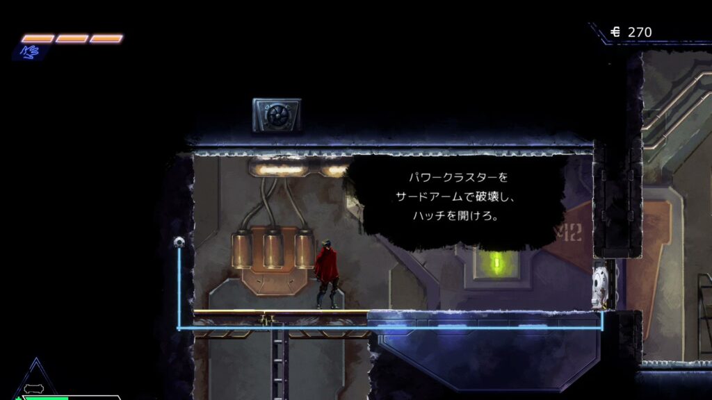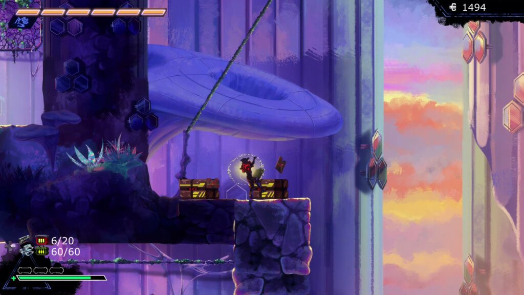 ゲームを進めると2段ジャンプや空中ダッシュ、フックでの移動などアクションの種類が増えてくる。