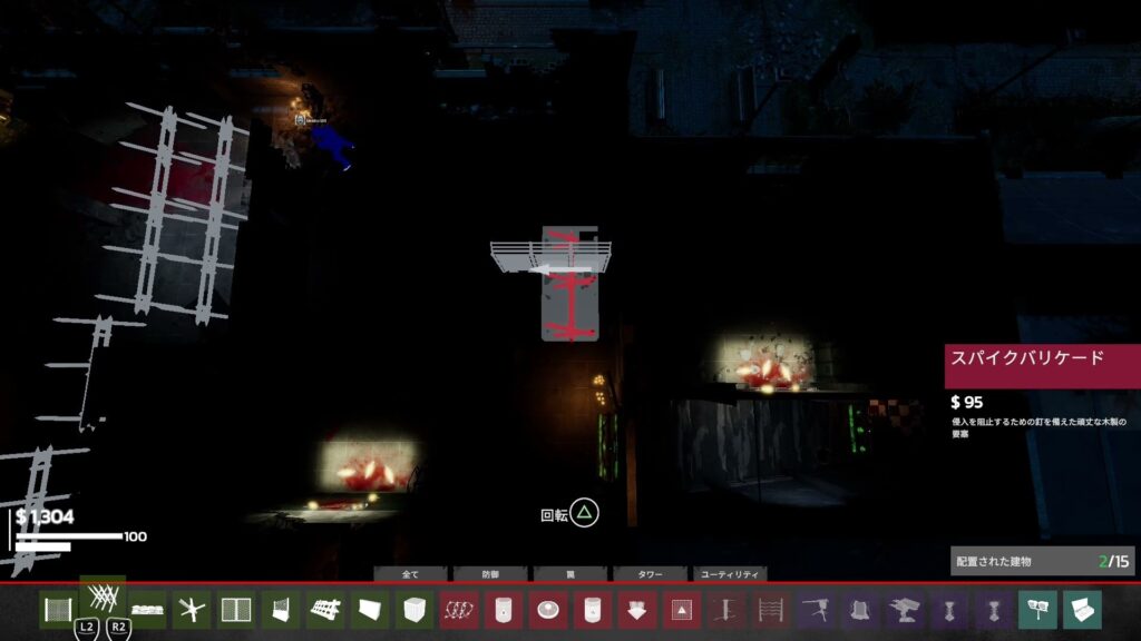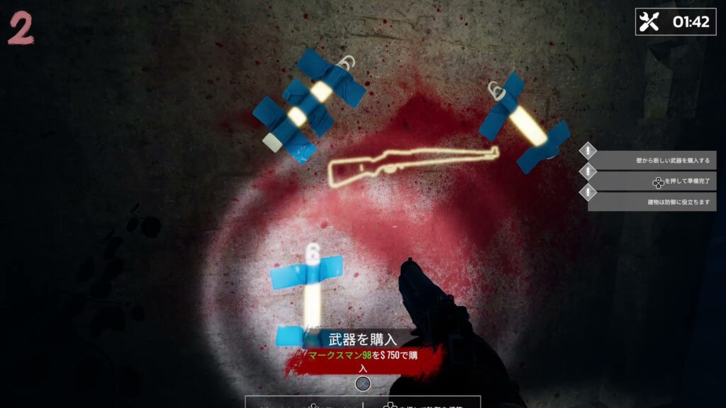 WAVEとWAVEの間の2分間で防衛施設の構築・修理・売却を行ったり、武器や防御施設のアップグレードなどを行う。