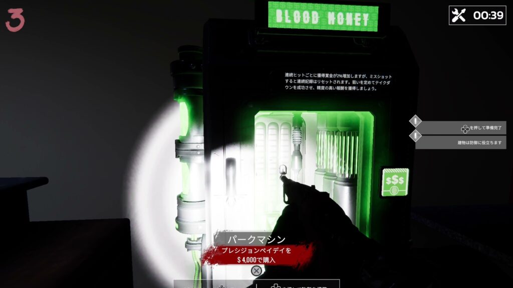 ヘルチャレンジ専用マップでは建物の建築ができないため、装備している武器とパークだけが頼りだ。