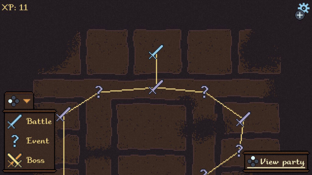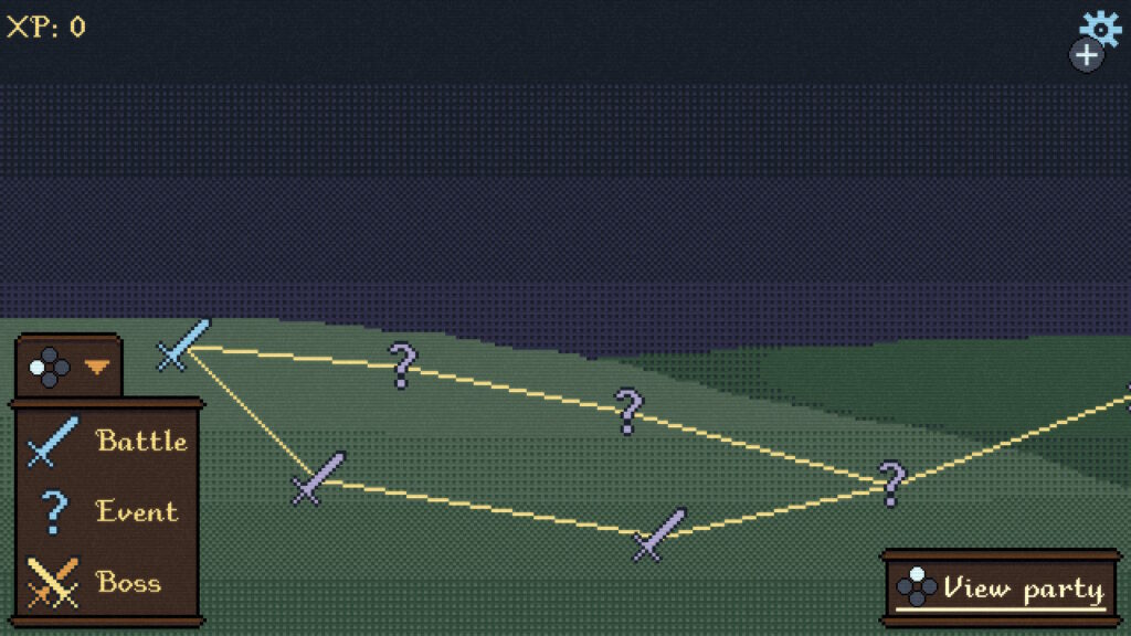 本作のフィールドはライン同士で繋がれた各マスを順に進めていく方式となっている。マスの種類は画面左下の補足にある通り、Battle(戦闘)、Event(イベント)、Boss(ボス戦)の3つ。
