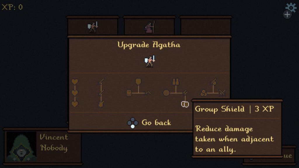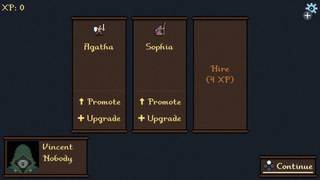 また、空白のメンバースロット内にある「Hire」を選ぶことで、”4XP”と引き換えにPeasant(農民)ユニットを1体雇用できる。人員を増やしたい場合には、思い切ってXPを投入してみるといいだろう。