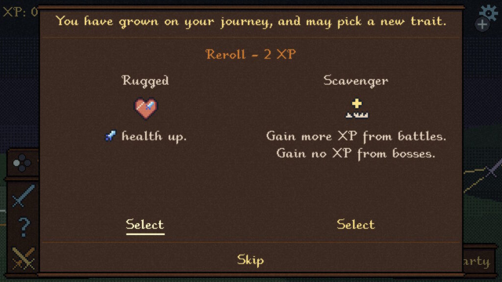 あなたは旅を通じて成長し、新たな特性を獲得するかもしれません。 |