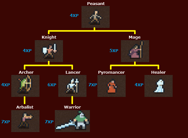 「Promote」(昇格)コマンドを通じて、選択中のユニットを上位のクラスに昇級することができる。昇格にはクラス毎に一定量のXPコストが必要となる。